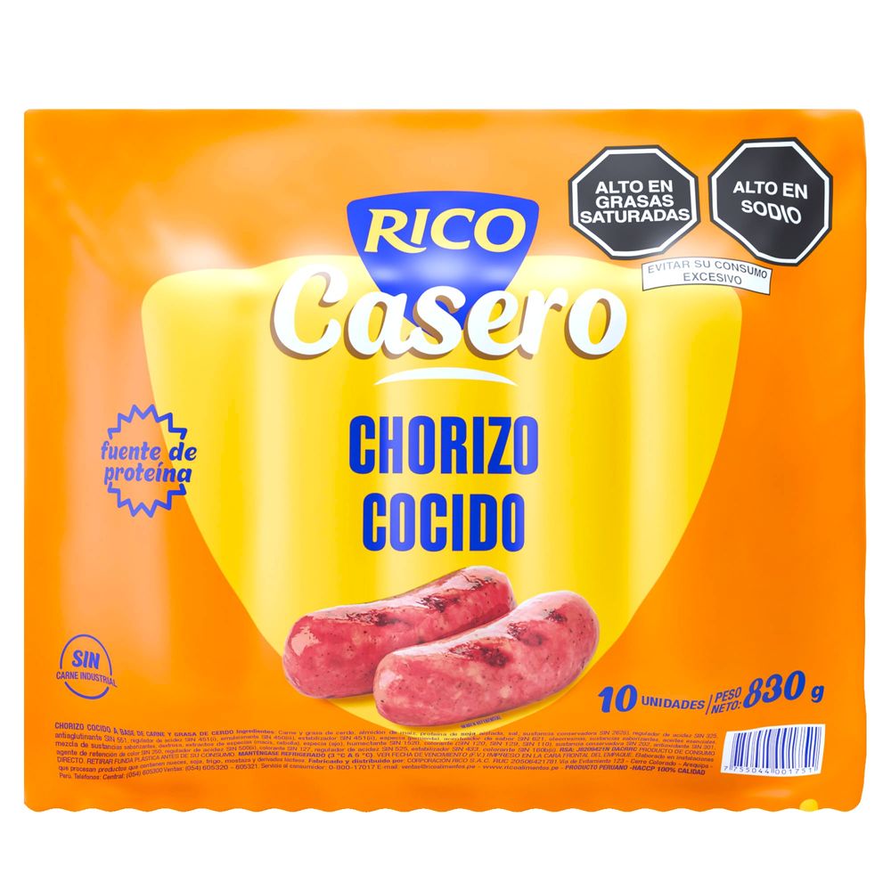 | Denominación/Variedad | RICO POLLO CHORIZ PARR PREC CASERO 830G |