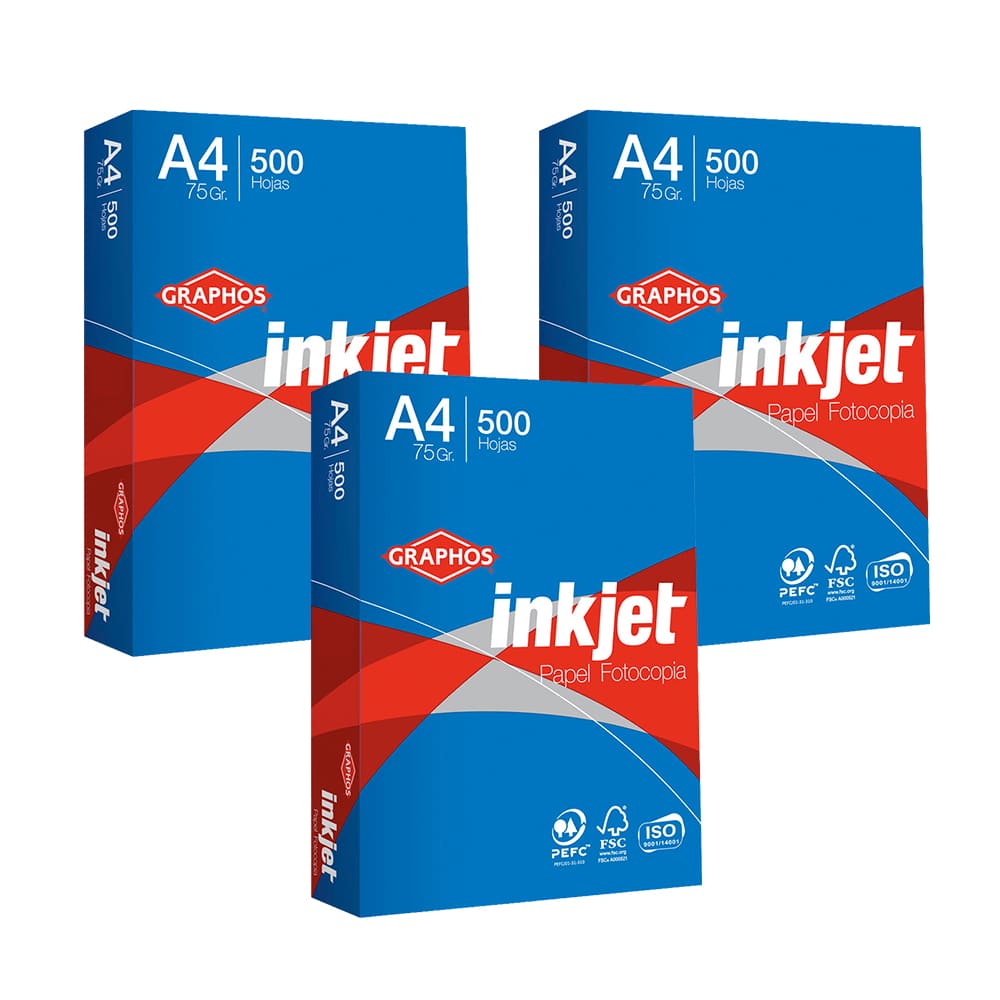 Papel Fotocopia INKJET 75g A4 x 3un