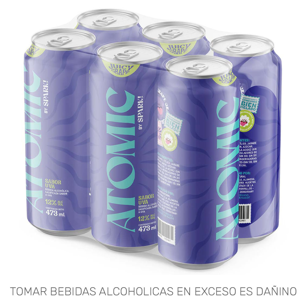 | Composición | Agua, alcohol etílico, jarabe invertido (agua, azúcar, regulador de acidez (INS 330, INS 500(ii))), regulador de acidez (INS 334, INS 330, INS 331(iii)), conservante (INS 211), colorantes (INS 133, INS 129), sabor uva. |